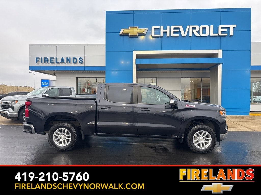 2023 Chevrolet Silverado 1500 LTCar Bravo Certified, Chevy Certified, 1-Owner, Great Price, Clean CarFax, Like New, 4WD / 4x4 / AWD, Heated Seats, Heated Steering Wheel, Remote Start, Navigation System, CarPlay, Android Auto, Bluetooth, Backup Camera, Steering Wheel Controls, Cruise Control, Multi Zone Climate Control, Keyless Start, Keyless Entry, Premium Audio, Satellite Radio, Premium / Alloy Wheels, Tow Package, Trailer Package, Trailer Hitch, Silverado 1500 LT LT1, 4D Crew Cab, 10-Speed Automatic, 4WD, Dark Ash Metallic, Black Cloth, 10-Way Power Driver Seat w/Lumbar, 12.3 Multicolor Reconfigurable Digital Display, 120-Volt Bed Mounted Power Outlet, 120-Volt Instrument Panel Power Outlet, All-Star Edition, Auto-Locking Rear Differential, Bluetooth® For Phone, Chevrolet Connected Access Capable, Chrome Mirror Caps, Color-Keyed Carpeting Floor Covering, Compass, Convenience Package, Convenience Package II, Deep-Tinted Glass, Dual Exhaust w/Polished Outlets, Dual Rear USB Ports (Charge Only), Dual-Zone Automatic Climate Control, Electric Rear-Window Defogger, Electrical Steering Column Lock, Electronic Cruise Control, EZ Lift Power Lock & Release Tailgate, Front Frame-Mounted Black Recovery Hooks, Front Rubberized Vinyl Floor Mats, HD Rear Vision Camera, Heated Driver & Front Outboard Passenger Seats, Heated Power-Adjustable Outside Mirrors, Heated Steering Wheel, Heavy-Duty Air Filter, Hill Descent Control, Hitch Guidance, Hitch Guidance w/Hitch View, Inside Rear-View Mirror w/Tilt, Integrated Trailer Brake Controller, Keyless Open & Start, LED Cargo Area Lighting, Off-Road Suspension, OnStar & Chevrolet Connected Services Capable, Power Front Windows w/Driver Express Up/Down, Power Front Windows w/Passenger Express Down, Power Rear Windows w/Express Down, Power Sliding Rear Window w/Rear Defogger, Preferred Equipment Group 1LT, Rear 60/40 Folding Bench Seat (Folds Up), Rear Rubberized-Vinyl Floor Mats, Remote Start Package, Remote Vehicle Starter System, SiriusXM w/360L, Standard Suspension Package, Standard Tailgate, Steering Wheel Audio Controls, Theft Deterrent System (Unauthorized Entry), Trailering App, Trailering Package, Universal Home Remote, Wheels: 18 x 8.5 Bright Silver Painted Aluminum, Wi-Fi Hot Spot Capable, Wireless Phone Projection, Wrapped Steering Wheel, Z71 Off-Road Package.Clean CARFAX.4WD 3.0L I6 10-Speed AutomaticOdometer is 16980 miles below market average! 22/27 City/Highway MPG Recent Arrival!Welcome to the Firelands Family!! We understand that you donât want to come to a dealership and play games for hours. Thatâs why we focus on a few key principles: Be Really Fast Be Really Friendly, Be Really Fun, Be Really Honest. The price you see is the price you pay; plain and simple! We price our cars NOT our customers and hope that you have fun when you are here. We will never advertise misleading or confusing payments thatâs not our style. Rather, we hope to give you the best retail experience possible; after all: we LIVE off repeat and referral business. Our Vehicle Specialists are NOT paid on the profit (or loss) of a vehicle. You have DIRECT access to our Sales and Finance Managers cell phone numbers. We canât wait to put our best foot forward and have you leave smiling for years to come!