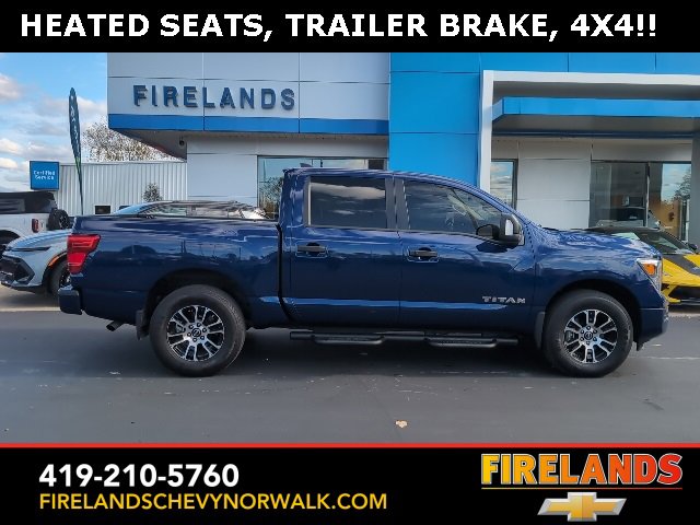 Car Bravo Certified, 1-Owner, Great Price, Clean CarFax, Like New, 4WD / 4x4 / AWD, Navigation System, CarPlay, Titan SV, 4D Crew Cab, 5.6L V8 DOHC 32V LEV3-ULEV70 400hp, 9-Speed Automatic, 4WD, Deep Blue Pearl, Black Cloth, 120V Outlet in Bed, 120V/12V Outlets In Back Of Center Console, 2 Illuminated USB-A Ports In Back Of Center Console, 4-Pin/7-Pin Wiring Harness Connector (Rear Bumper), Auto-Dimming Rear-View Mirror, Dedicated Cell Phone Holder, Dual Illuminated Vanity Mirror Front Sun Visors, Dual Zone Automatic HVAC, Electronic Locking Tailgate, Flat Floor Function w/Tie Down Hooks, Front & Rear Parking Sensors, Heated Front Captain's Chairs, Heated Manually Extendable Tow Mirrors, Intelligent Key System, Leather-Wrapped Steering Wheel, LED Tailgate Area Illumination, LED Under Rail Bed Lighting, Mood Light, NissanConnect Services, Overhead Console w/Sunglass Holder, Power Sliding Rear Window w/Defogger, Puddle Lamps, Rain Sensing Wipers, Rear HVAC Vents, Rear Utility Bed Step, Rearview Mirror w/Universal Garage Door Opener, Receiver Hitch, Remote Engine Start System, Spray-On Bedliner, SV Convenience Package, SV Tow Package, SV Utility Package, Trailer Brake Controller, Trailer Light Check Function On Key Fob, Utilitrack System w/2 Tie-Down Cleats, Wi-Fi Hotspot.