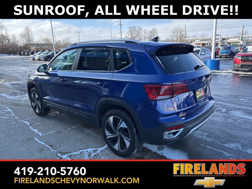Car Bravo Certified, Great Price, Like New, Heated Seats, Heated Steering Wheel, Remote Start, CarPlay, Android Auto, Bluetooth, Backup Camera, Rain Sensing Wipers, Lane Departure Warning, One Owner, New Tires, Clean CARFAX, 4WD/4X4/AWD, Bluetooth Hands Free, Back Up Camera, Balance of Factory Warranty, Service Records Available, All-Wheel Drive, Apple Carplay/Android Auto, Blind Spot Detection, Fog Lights, Automatic Emergency Braking, Forward Collision Warning, Rear Cross Traffic Alert, Wireless Charging Pad, Panoramic Moonroof, Heated Front Seats, Taos 1.5T SE AWD, Dusk Blue Metallic, Black w/CloudTex & Cloth Seating Surfaces, Active Blind Spot Monitor, AM/FM radio: SiriusXM with 360L, Automatic temperature control, Brake assist, CloudTex & Cloth Seating Surfaces, Compass, Exterior Parking Camera Rear, Front dual zone A/C, Front Strut Rear Multi-Link Suspension, Fully automatic headlights, Heated door mirrors, Heated Front Bucket Seats, Heated front seats, Illuminated entry, Leather Shift Knob, Low tire pressure warning, Occupant sensing airbag, Outside temperature display, Panoramic Sunroof Package, Passenger vanity mirror, Power driver seat, Radio data system, Rain sensing wipers, Remote keyless entry, Rubber Mats Kit (SNM), Speed control, Spoiler, Steering wheel mounted audio controls, Trip computer, Wheels: 18 2-Tone Machined Alloy.